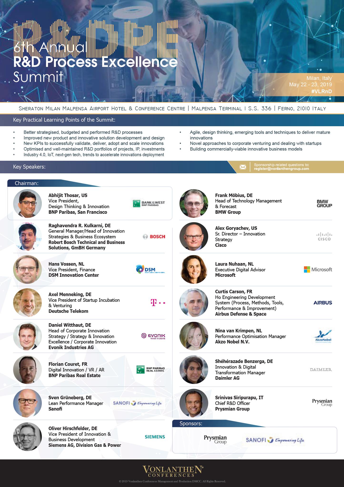 I had an opportunity to chair the 6th annual R&D Process Excellence Summit in Milan, Italy in May 2019. Conference was attended by leading innovation experts across industries from North America, Central Europe and Asia.